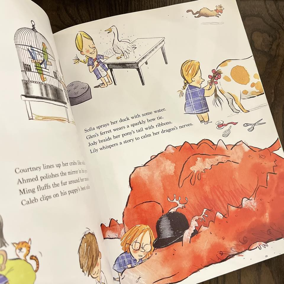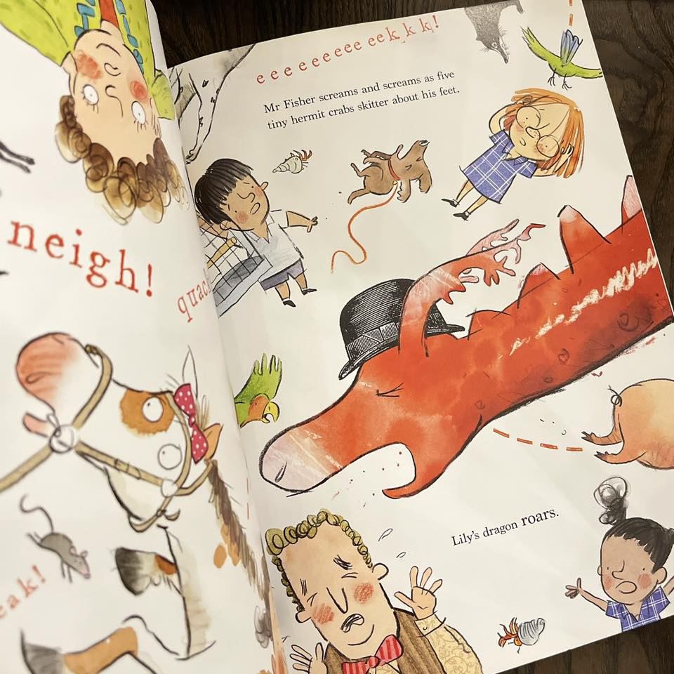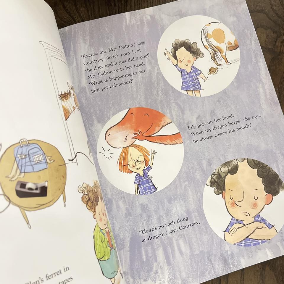 Today is Pet Day in Lily’s class. All the kids bring in their pets – hermit crabs, parrots, mice, puppies, ferrets and ducks – but Lily brings her dragon. Class smarty-pants Courtney says to Lily that dragons are only in fairy tales so how could she have a dragon? However, when all the pets misbehave in the middle of the all-important pet parade, guess who (or what) saves the day?