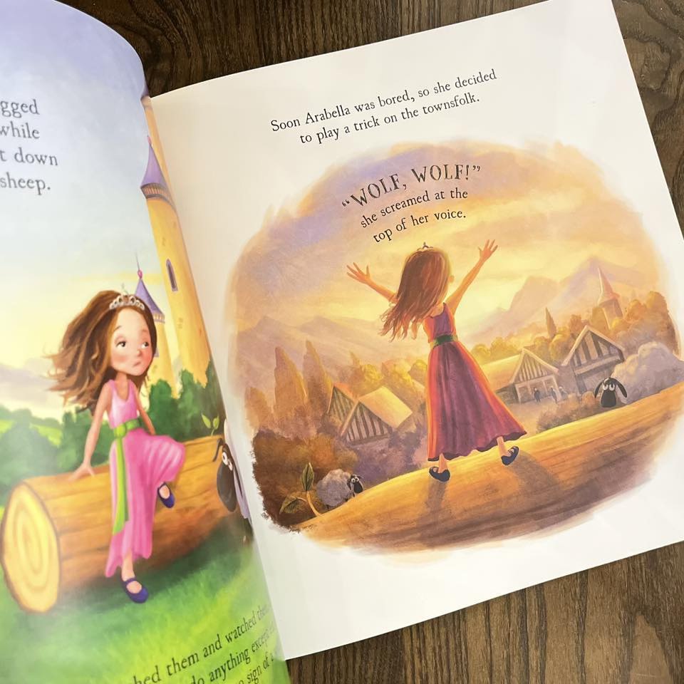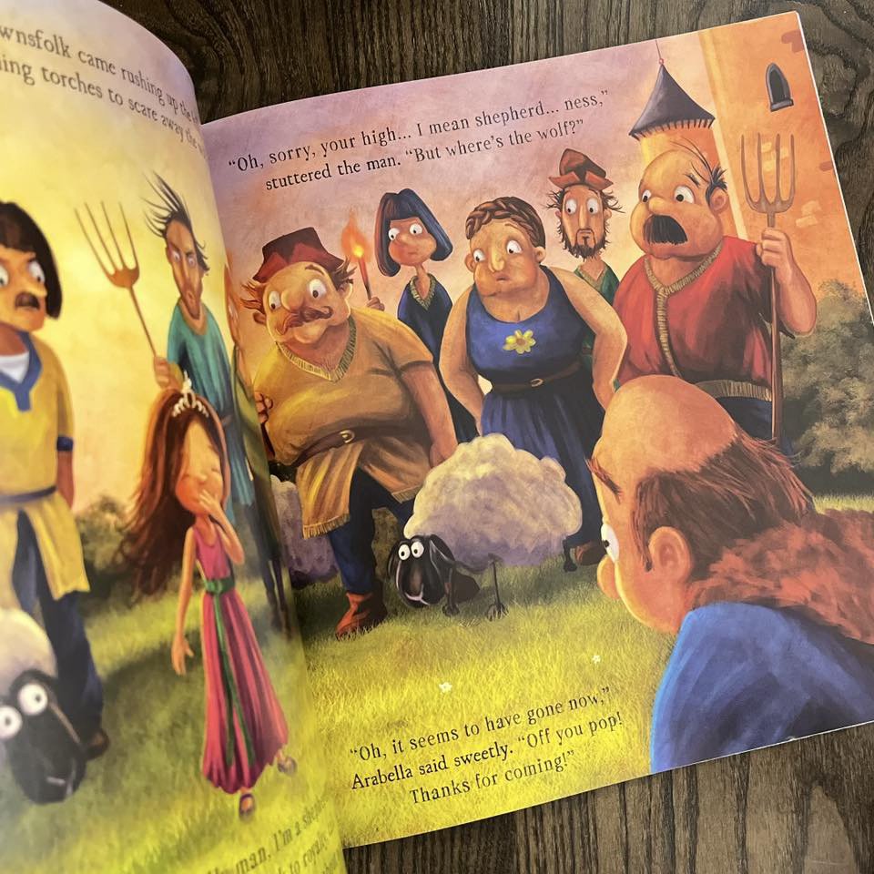 “WOLF, WOLF!” she cries, sending the panicked villagers up the hill – only to find there is no wolf. “TROLL, TROLL!” Arabella later cries, giggling. Again, the townsfolk rush up the hill to her rescue, huffing and puffing – only to find there is no troll. So later, when the cry “DRAGON, DRAGON!” comes from Arabella, the townsfolk ignore her. But this time there really is a dragon…