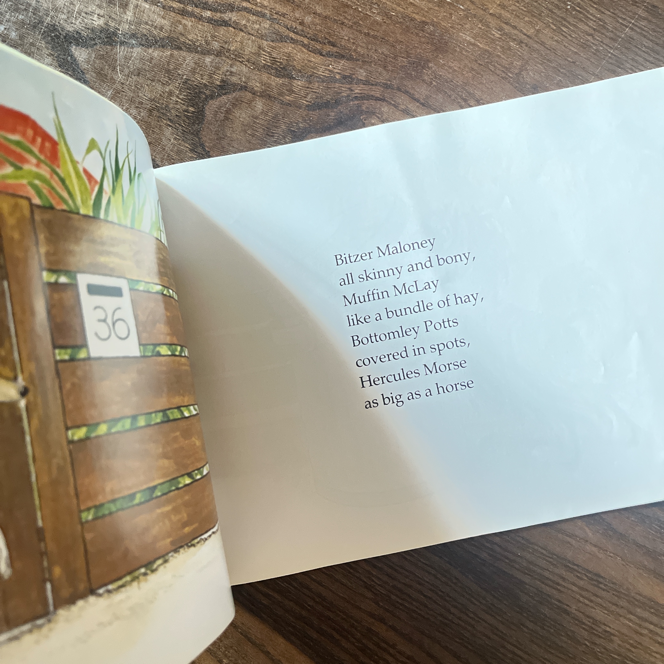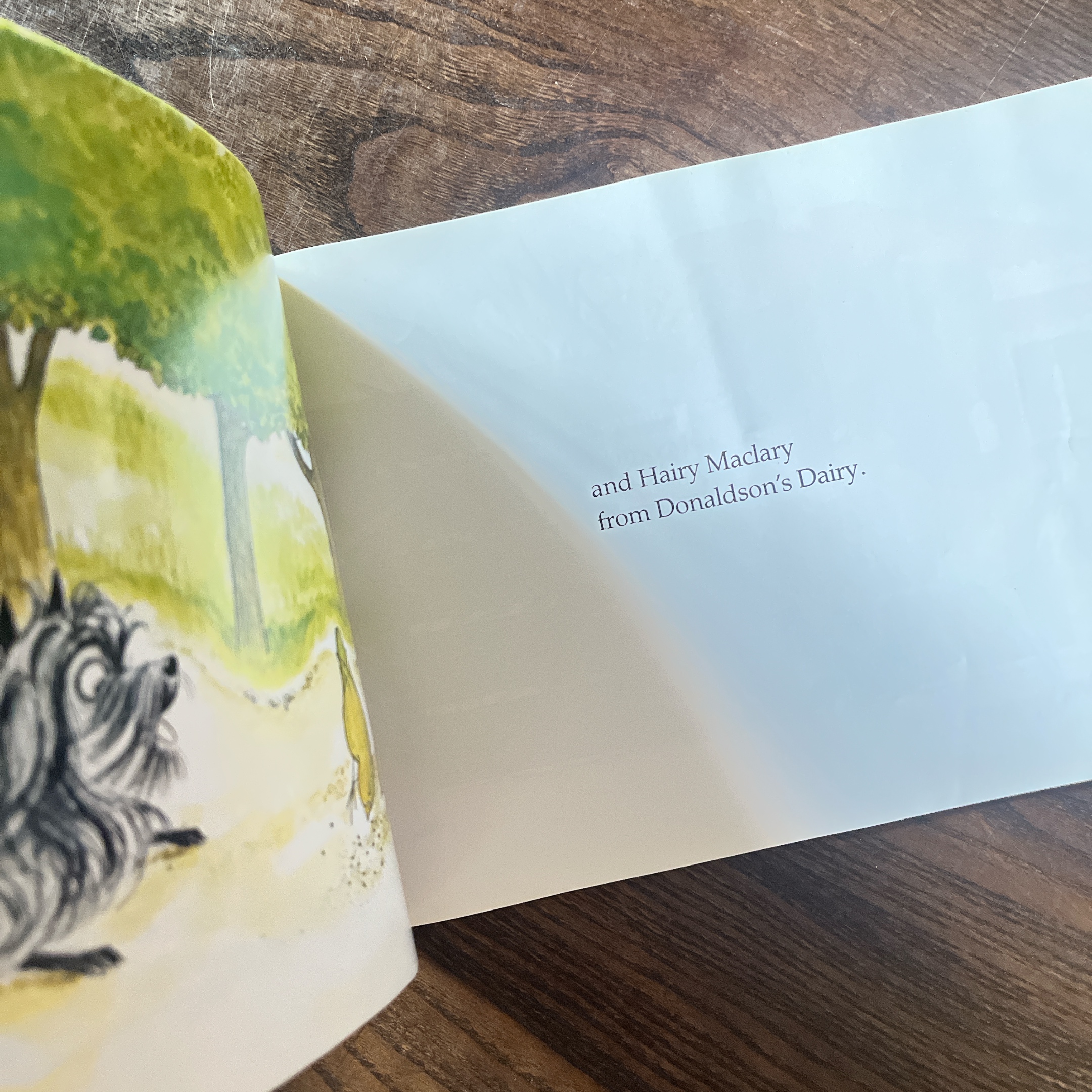 Hairy Maclary is off for a walk in town, and on the way he’s joined by many furry friends of all shops and sizes, from Bottomley Potts (covered in spots) to Schnitzel von Krumm (with a very low tum). But when they suddenly find themselves face-to-face with Scarface Claw – the toughest Tom in town – it’s time to run all the way back home!