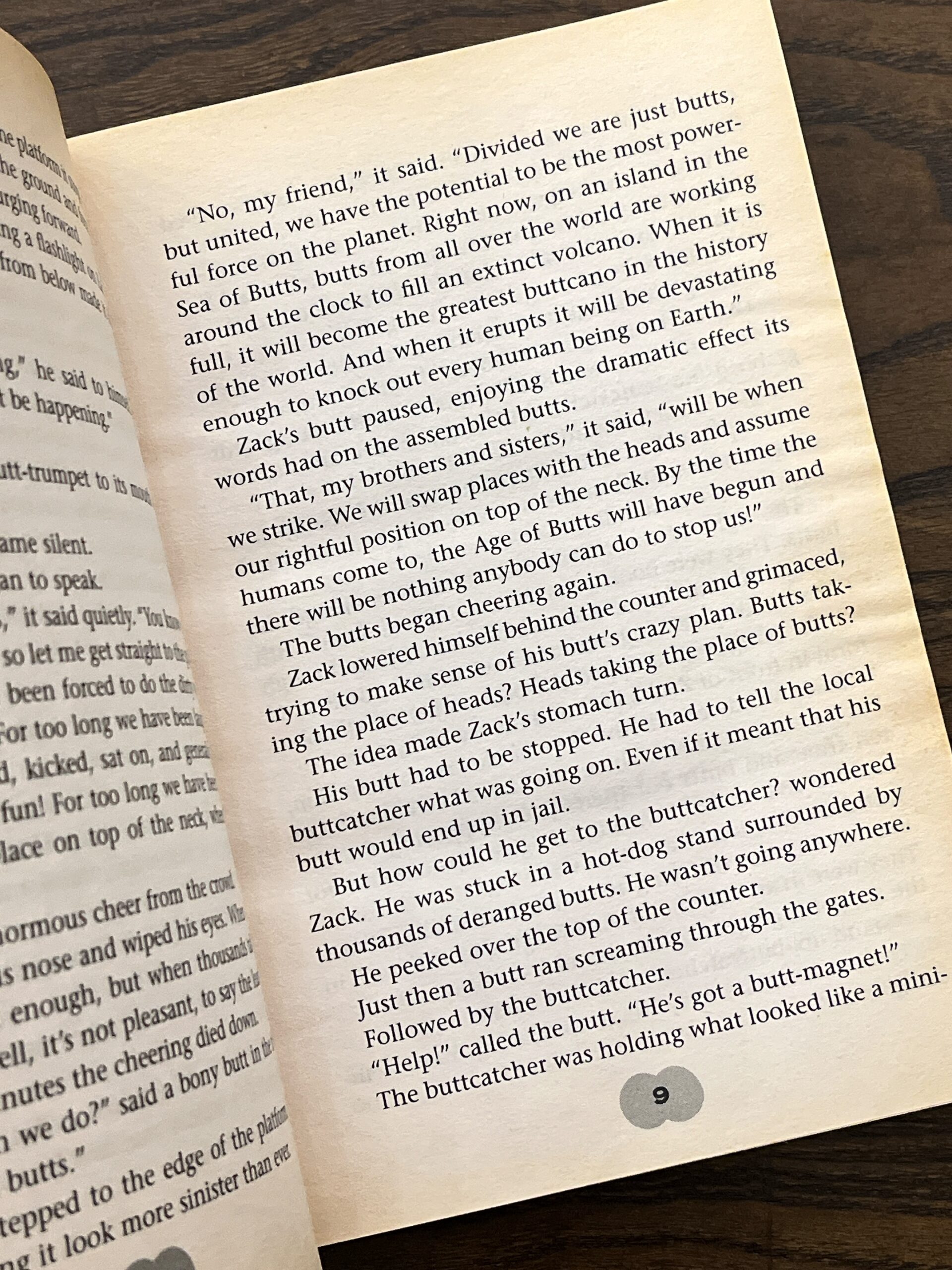 Zack Freeman is ready to tell his story—the story of a brave young boy and his crazy runaway butt. The story of a crack butt-fighting unit called the B-team, a legendary Butt Hunter’s formidable daughter, and some of the ugliest and meanest butts ever to roam the face of the Earth.