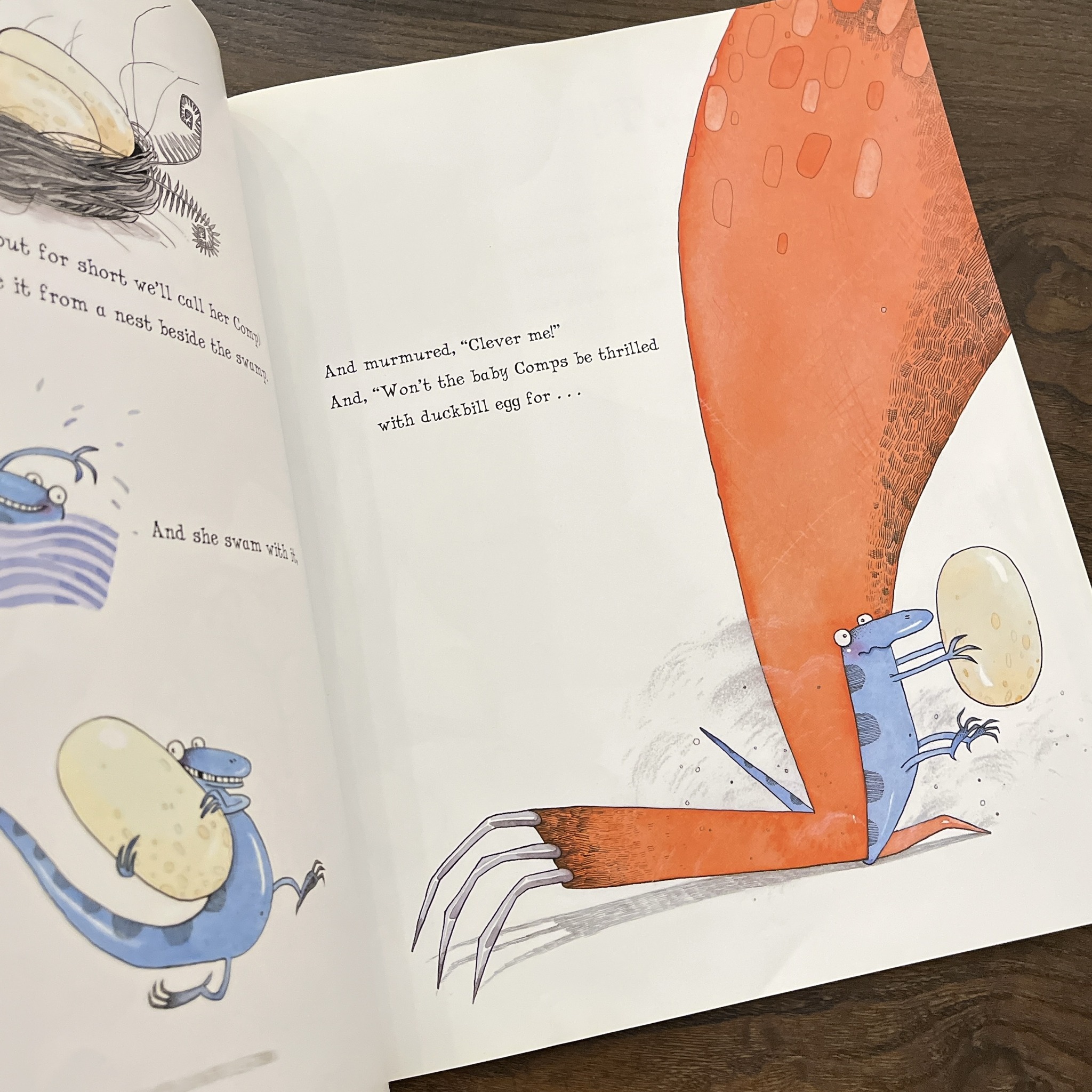 Everyone knows that tyrannosauruses are big and scary, so when a placid duckbill dinosaur`s egg ends up in the wrong nest confusion is sure to ensue! When the baby dinosaur hatches out, he`s so out of place that his grisly big sisters call him Tyrannosaurus Drip. Poor little Drip: all he wants is a quiet life munching on water weed…